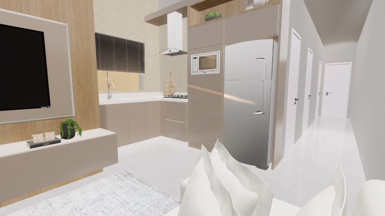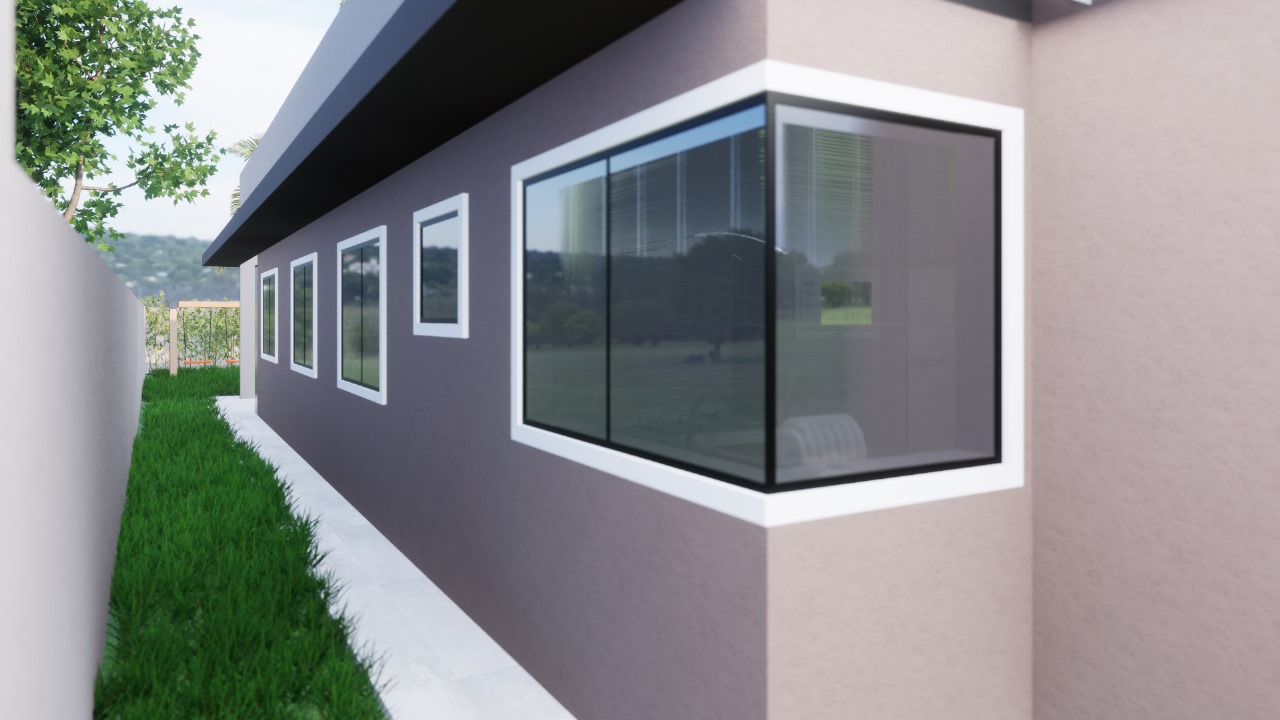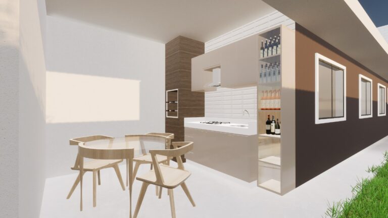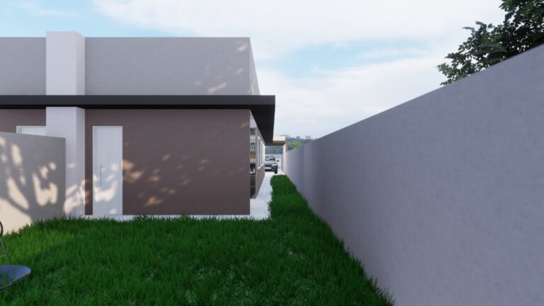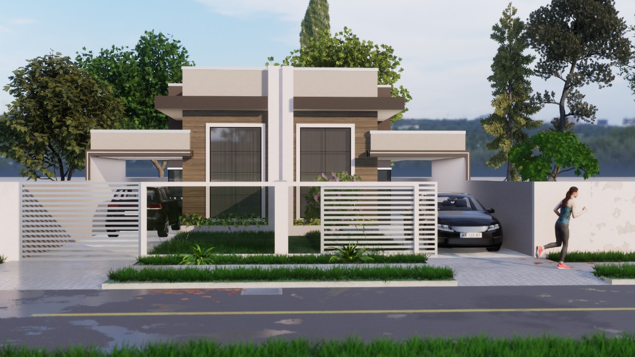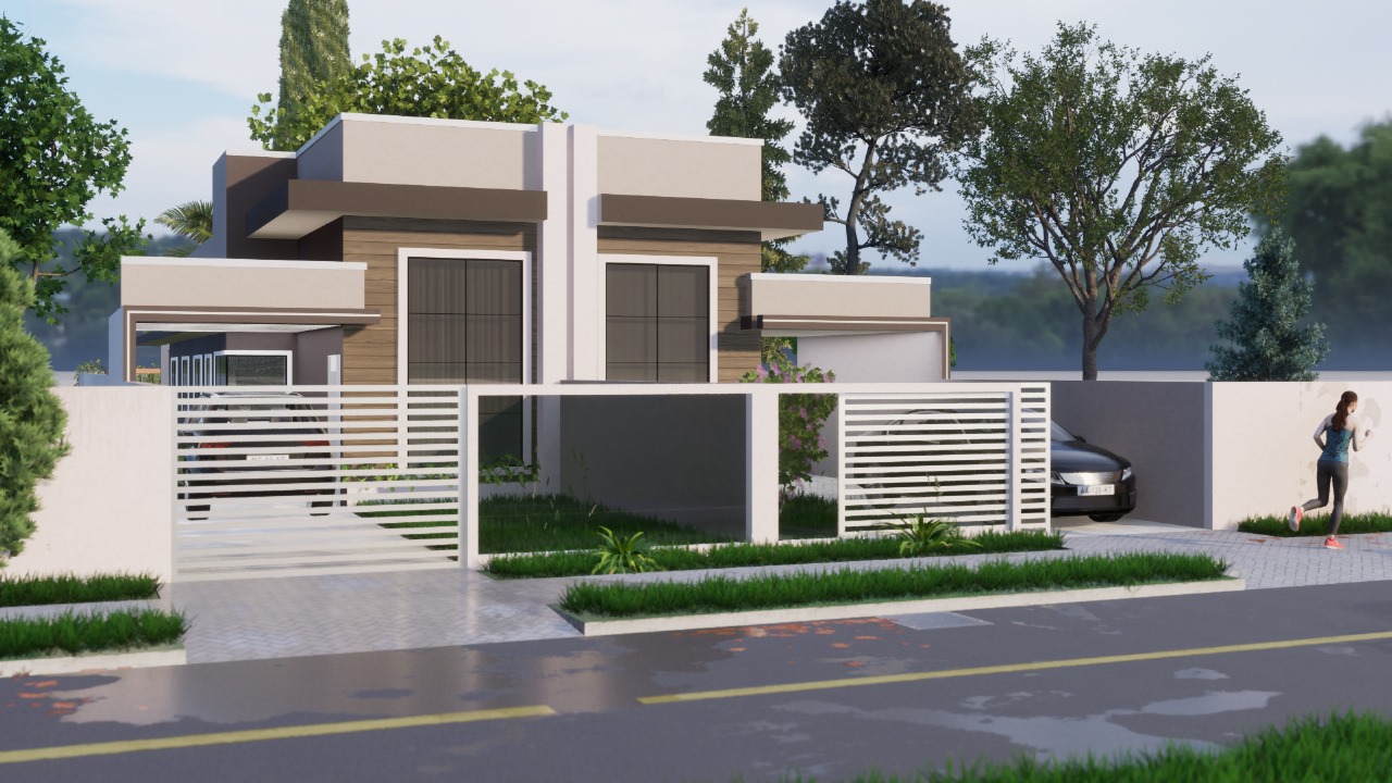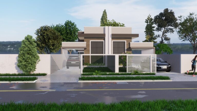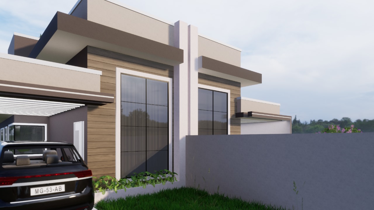 Esta casa possui 91,93 m² de área construída em um terreno de 187,5 m², com 3 dormitórios sendo 1 suíte, sala ampla de jantar e TV com pé direito alto, cozinha, banheiro social, área de serviço, churrasqueira com lavabo e 2 vagas de garagem.